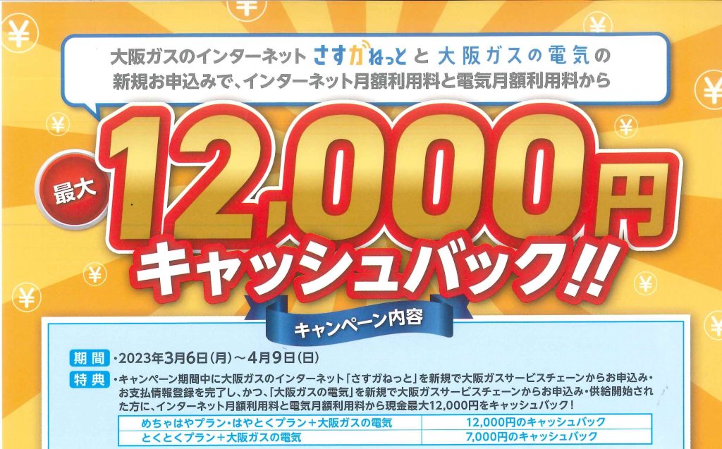 エネファームセット (発電ユニット+バクアップ熱源機)を クレジット契約でご購入いただいたお客様限定 10万円 キャッシュバック キャンペーン 期日:2023年2月13日(月)~2023年3月31日(金)ま …